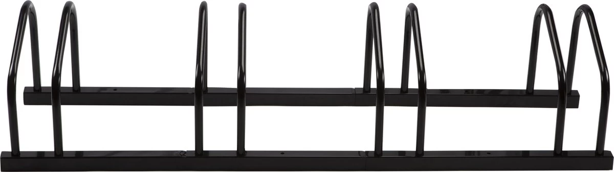 Het fietsenrek is gemaakt uit stevig zwart gepoedercoat staal. Het fietsenrek wordt geleverd als bouwpakket en zet je vliegensvlug in elkaar met het meegeleverde montagemateriaal en de handleiding. De vier beugels zijn geschikt voor fietsen met een maximale banddikte van circa 6.5 centimeter. Met een afstand van circa 25 centimeter tussen elke plek is er voldoende ruimte tussen de fietsen, zodat sturen en kabels niet in elkaar verstrikt raken. Inclusief bevestigingsmateriaal voor grond of muur. Het frame van het fietsenrek is voorzien van 4 schroefgaten. Het fietsenrek wordt inclusief 4 schroeven en 4 pluggen geleverd om het rek aan de grond of aan de muur te bevestigen.