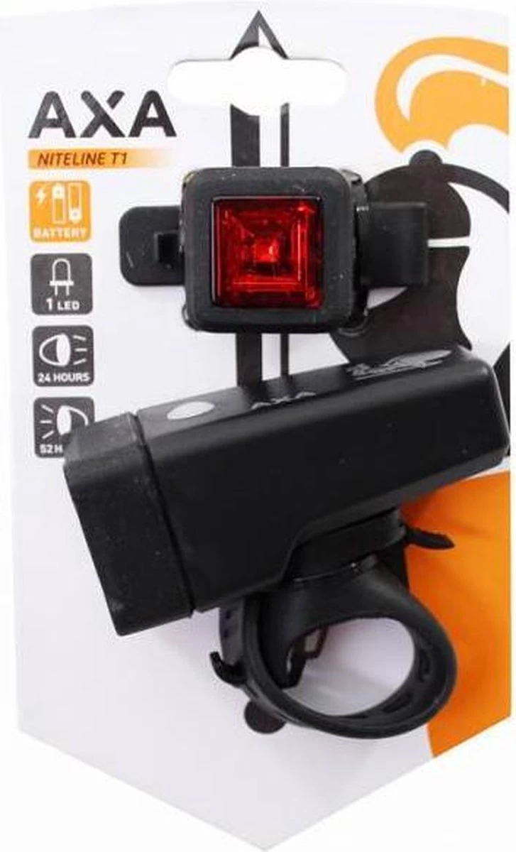 De AXA Niteline is een fietsverlichting set bestaand uit voor- en achterlicht en werkend op batterijen. De fietsverlichting is klein en compact, maar erg effectief. De verlichting zorgt ervoor dat je tot 2.000 meter gezien kunt worden door medeweggebruikers.