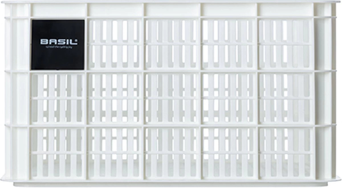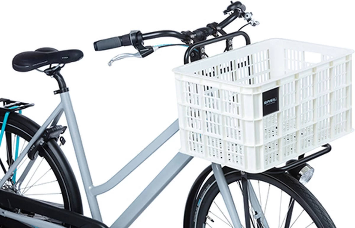 De Basil fietskrat in de maat L is een witte fietskrat voor op een dames- of herenfiets. De fietskrat is gemaakt van duurzaam materiaal en heeft een inhoud van 40 liter.