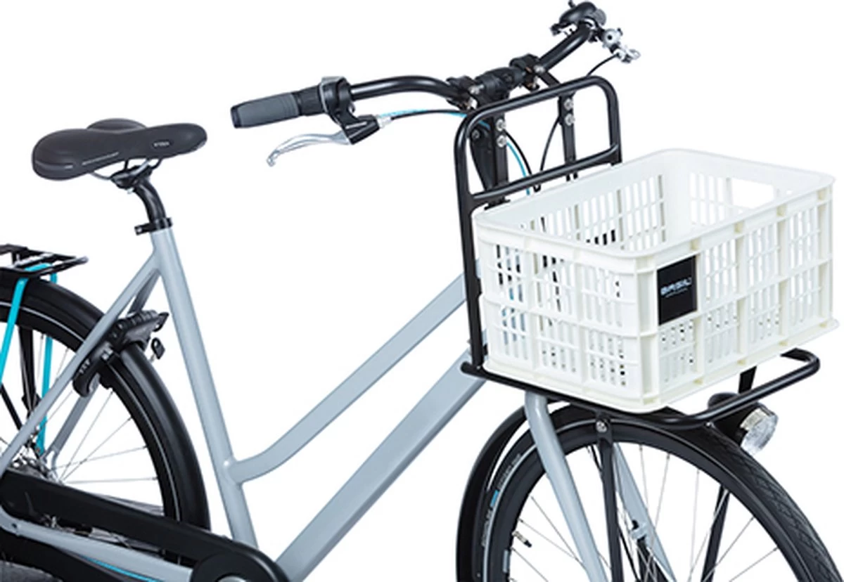 De krat kun je op meerdere manieren bevestigen. Voor een vaste montage maak je gebruik van de Basil Crate mounting set. Wil je de krat meenemen, omdat je bijvoorbeeld boodschappen bij je hebt of omdat je krat anders gejat wordt? Kies dan voor bevestiging met een adapterplaat zoals het MIK systeem. MIK = klik & GO! Het bevestigingssysteem koop je apart.