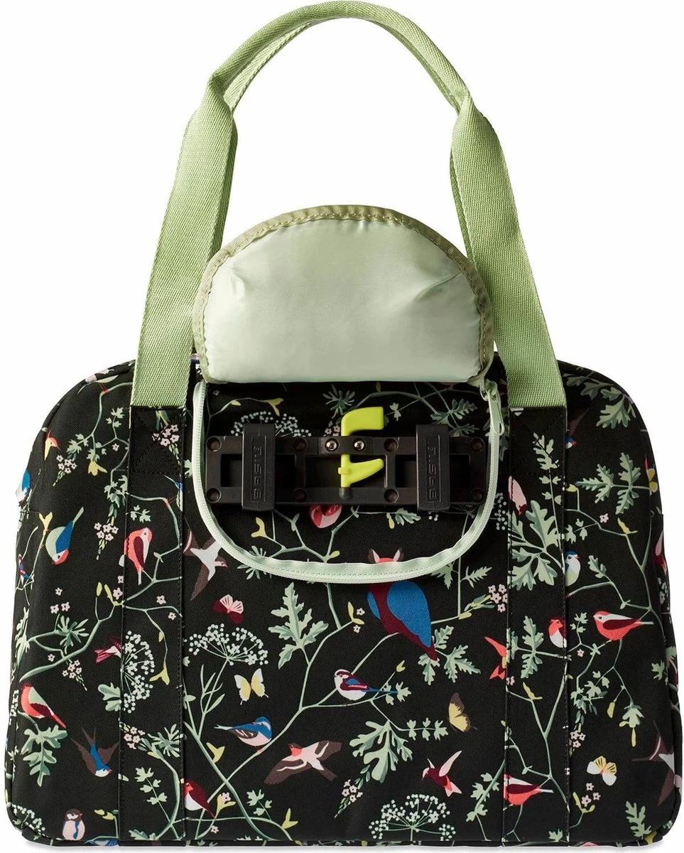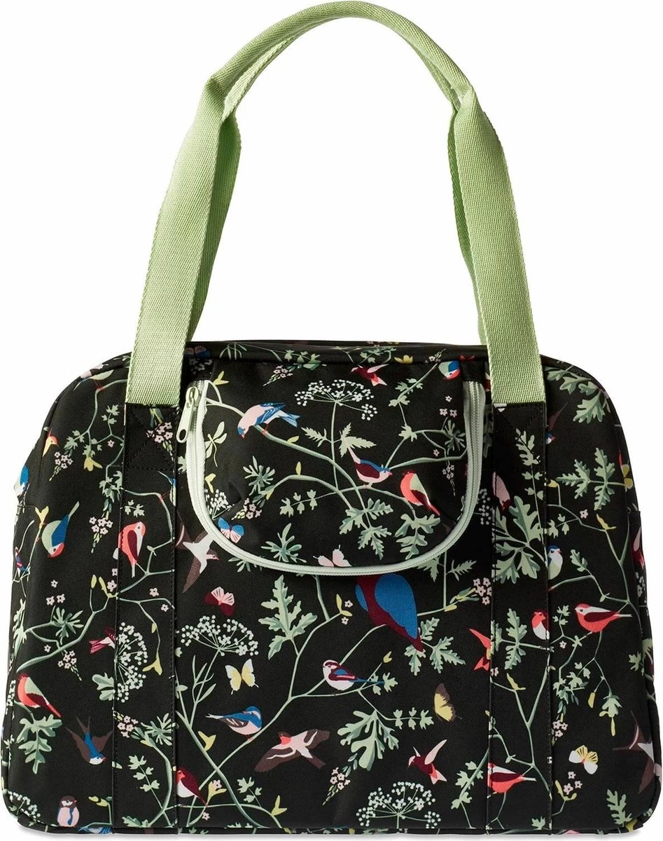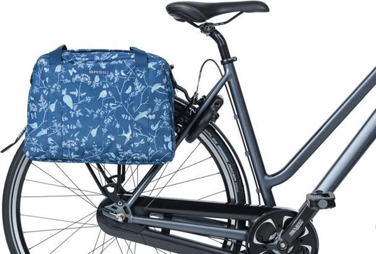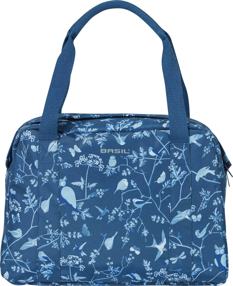 De Basil Wanderlust Carry All Bag is een blauwe fietshandtas met een kleurrijke vogelprint. Met deze vrolijke fietstas ga jij, zo vrij als een vogel, de wereld verkennen. Of je nu een fietstrip gaat maken met die vriendin of een dagje gaat picknicken in het park, deze tas maakt jouw fietsrit leuker en makkelijker. Door het waterafstotende materiaal blijft de inhoud van de tas droog ondanks die regenbui onderweg. De tas heeft een ritssluiting, stevige binnenvoering en hengsels zodat je de tas over je schouder, maar ook in de hand kan dragen. Door het Hook-On System haak je de fietshandtas eenvoudig op diverse bagagedragers (ook E-bike). De reflectiedetails maken je beter zichtbaar in het donker. De inhoud van de tas is 18 liter met een ruim vak aan de binnenkant, waardoor er genoeg ruimte is voor je dagelijkse benodigdheden. Eigenschappen: Eenvoudig aan diverse bagagedragers (ook E-bike) te haken m.b.v. het Hook-On System. De tas is gemaakt van waterafstotend materiaal, waardoor de tas prima tegen een regenbui kan. Door de reflectiedetails ben je beter zichtbaar in het donker.