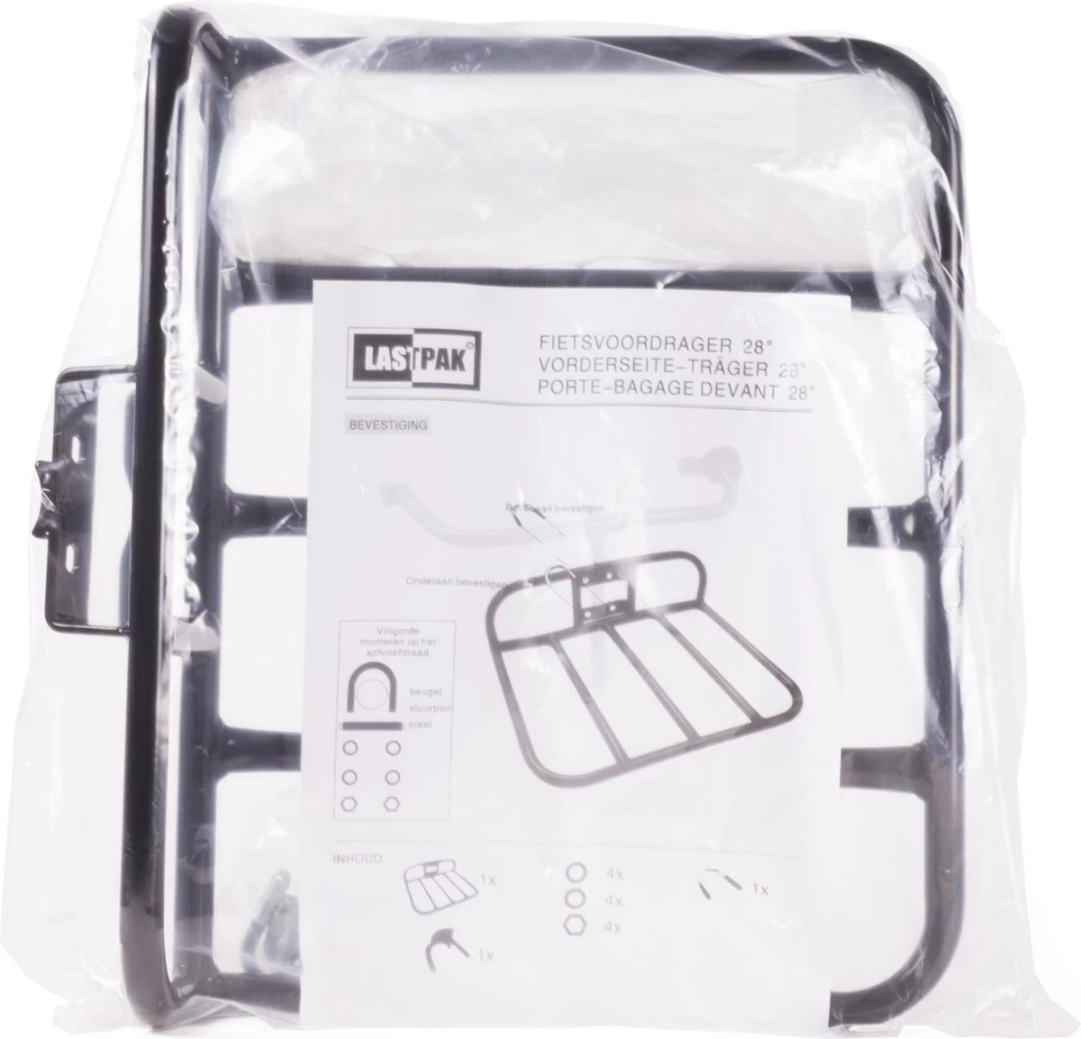 De Voordrager breed (33x41cm) is een sterke voordrager die makkelijk voorop de fiets te monteren is.