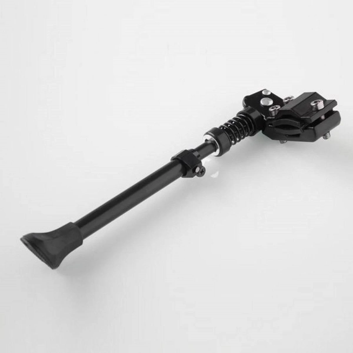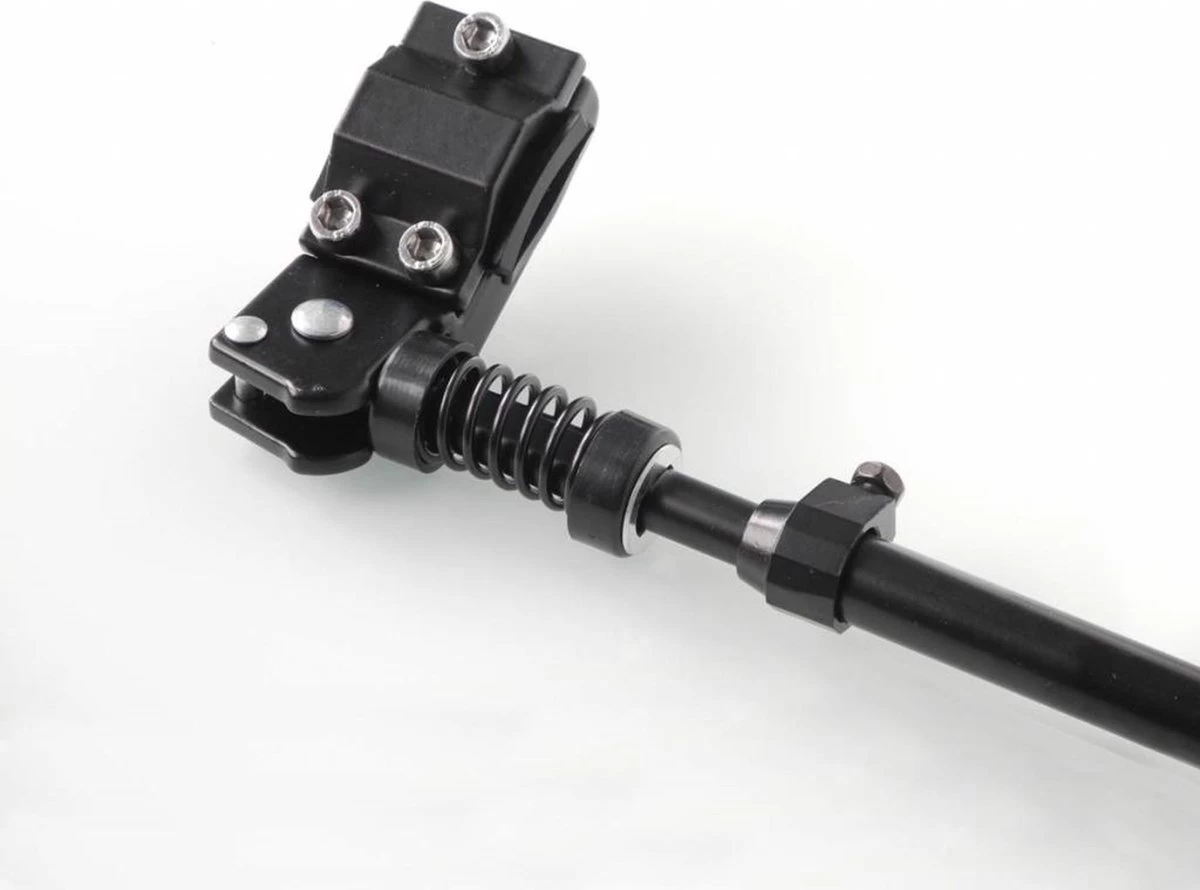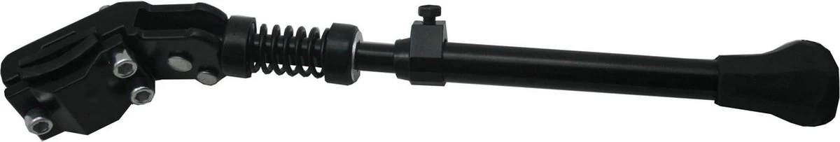 De verstelbare fiets standaard is een zijstandaard geschikt voor montage op de achterbrug. De zwarte fietsstandaard is geschikt voor fietsen van 24” to 29″ en heeft een rubber voet. De fietsstandaard mTB sport fietsstandaard verstelbaar beschikt over een uitschuifbare stang. Hierdoor kun je de fietsstandaard naar eigen wens instellen. Het is gemaakt van aluminium en roest daarom niet.