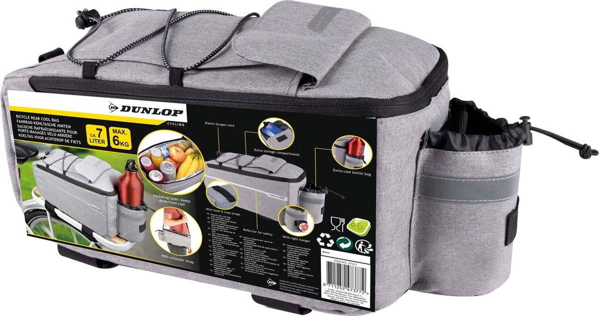 Er is bij mooi weer natuurlijk niks fijners als het maken van een heerlijke fietstocht langs een aantal van je favoriete plekjes. En om het fietsen nog fijner te maken is het natuurlijk fijn als je onderweg ook van een koud drankje of een lekkere lunch kunt genieten. Zo ben je niet afhankelijk van horeca langs je route en kun je ook in mooie natuurgebieden stoppen om even wat te eten. De binnenlaag van de Dunlop koeltas voor achterop je fiets is isolerend. Hierdoor kun je eten en drinken koud of warm houden van -10 tot maximaal 70 graden. Daarnaast zit er aan de acherkant van de fietstas nog een extra koelvak waar je makkelijk een fles in kwijt kunt.