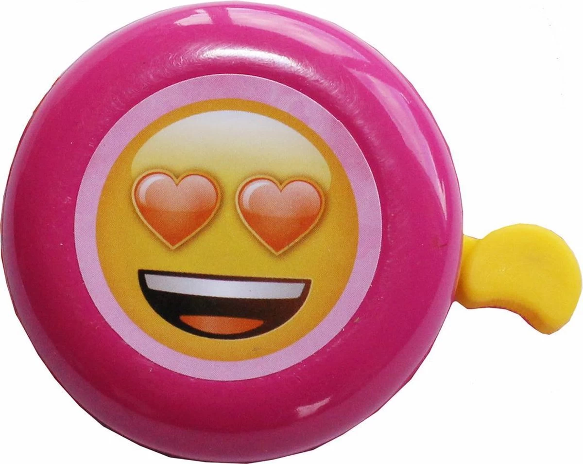 Helemaal blij word je van de Emoji fietsbel. Dit is een fiets bel met een afbeelding van een Emoticon erop. Op deze pink fietsbel vind je de bekende love Emoticon met hartjes ogen. Deze bel zal niet alleen je fiets mooi pimpen, maar help je zeker qua veiligheid op de fiets.