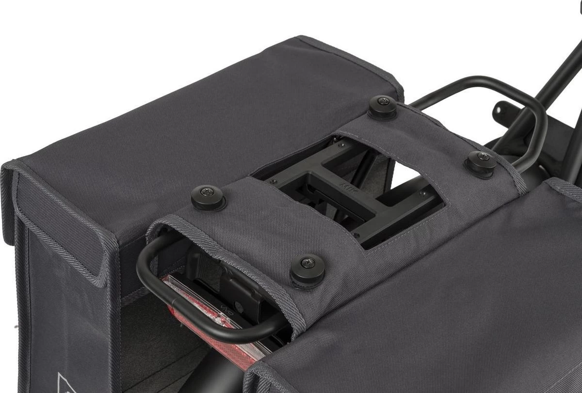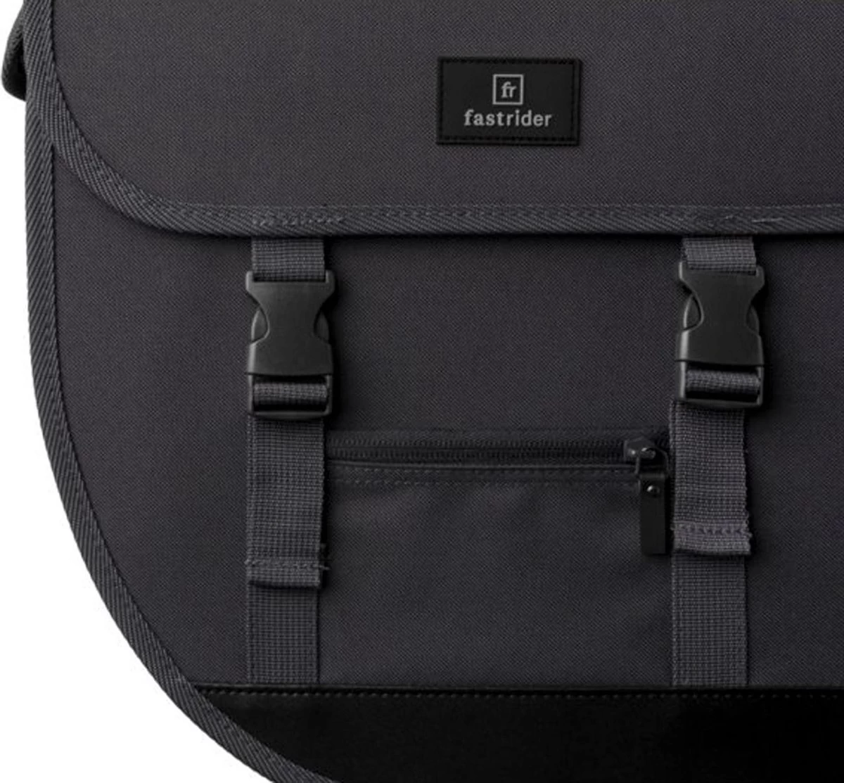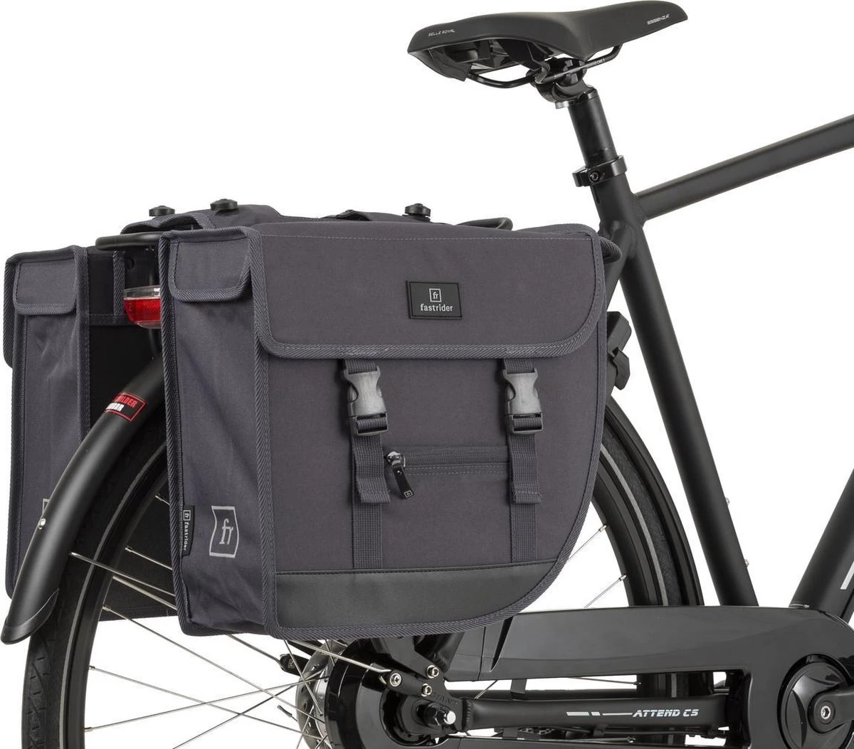 De FastRider Hybride Dubbele Fietstassen zijn speciaal ontwikkeld voor dagelijks gebruik op de fiets. Met zijn inhoud van 26 en 35 liter kan je met gemak al je spullen meenemen. Daarnaast zit deze tas nooit in de weg tijdens het fietsen, de afgeschuinde kanten zorgen ervoor dat hij niet in de weg zit tijdens het trappen. Gemaakt van Gerecycled Polyester is deze tas zeer stevig en hij houdt een kleine regenbui buiten dankzij de waterafstotende coating en de regenoren.