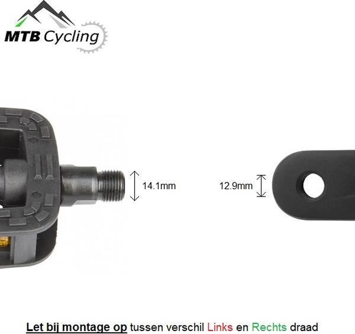 De pedalen zijn voorzien van een schroefdraad van 14.2 mm (9/16 Inch) en passen daarmee op de meest gebruikelijke trappers.