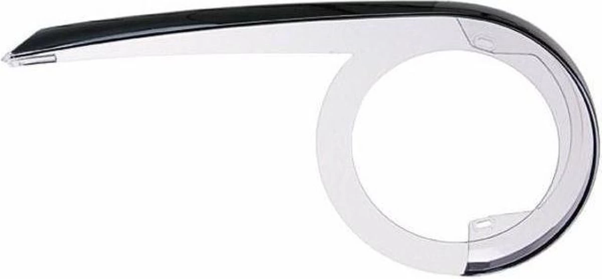 Hesling kettingscherm “Cambio” in presentatieverpakking. Wordt gebruikt op o.a. Koga / Batavus / Sparta. Eigenschappen: 1-vleugelig Kunststof Incl. toebehoren Voor crankbladen tot 46 tanden Totale Lengte: 49 cm Hoogte: 22 cm Diameter Crankgat: 16 cm Diepte: 42 mm Transparant met zwarte afdekrand