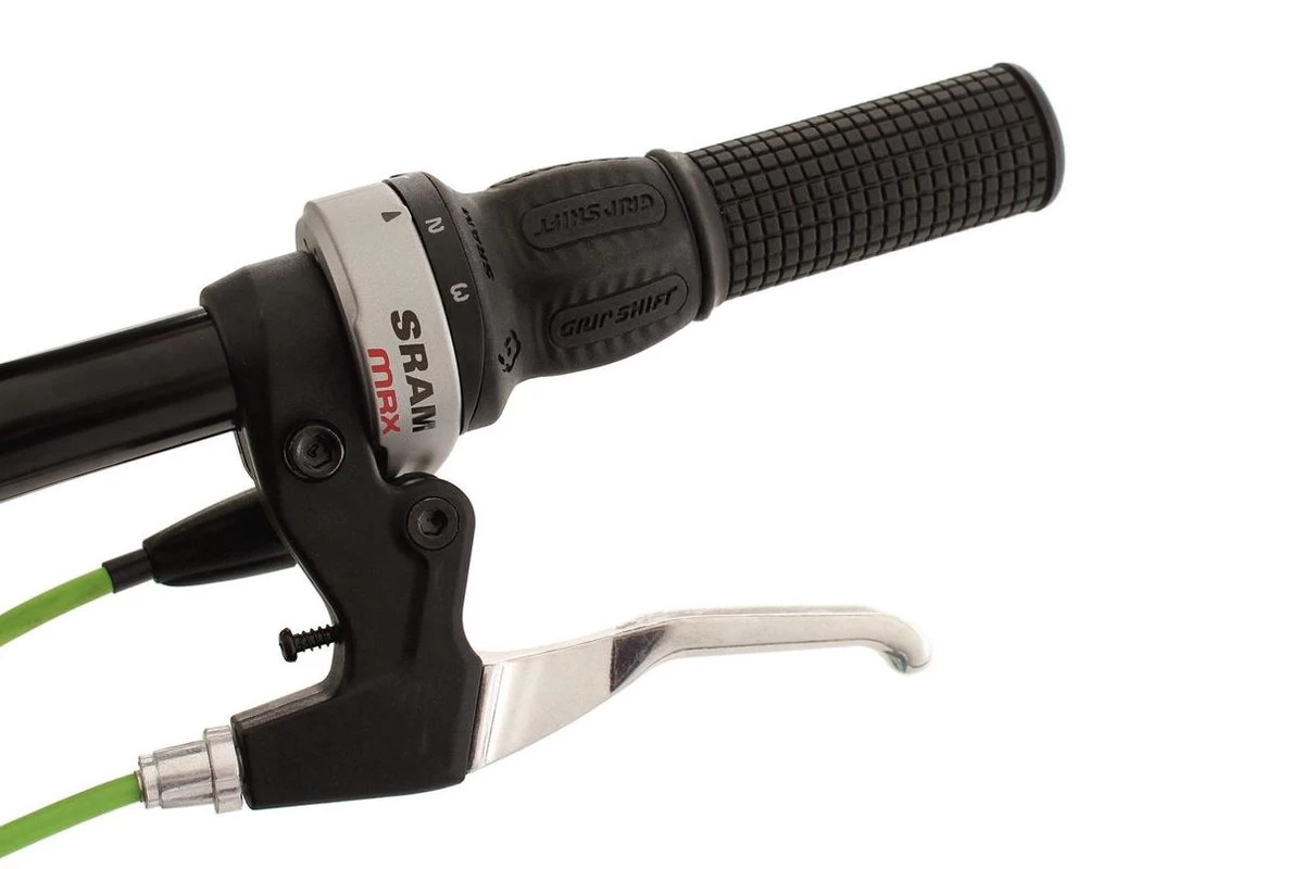 » Verende voorvork en geveerd frame » Y-vormig frame » 21 SHIMANO versnellingen » SRAM-draaischakelgrepen » Schijfremmen