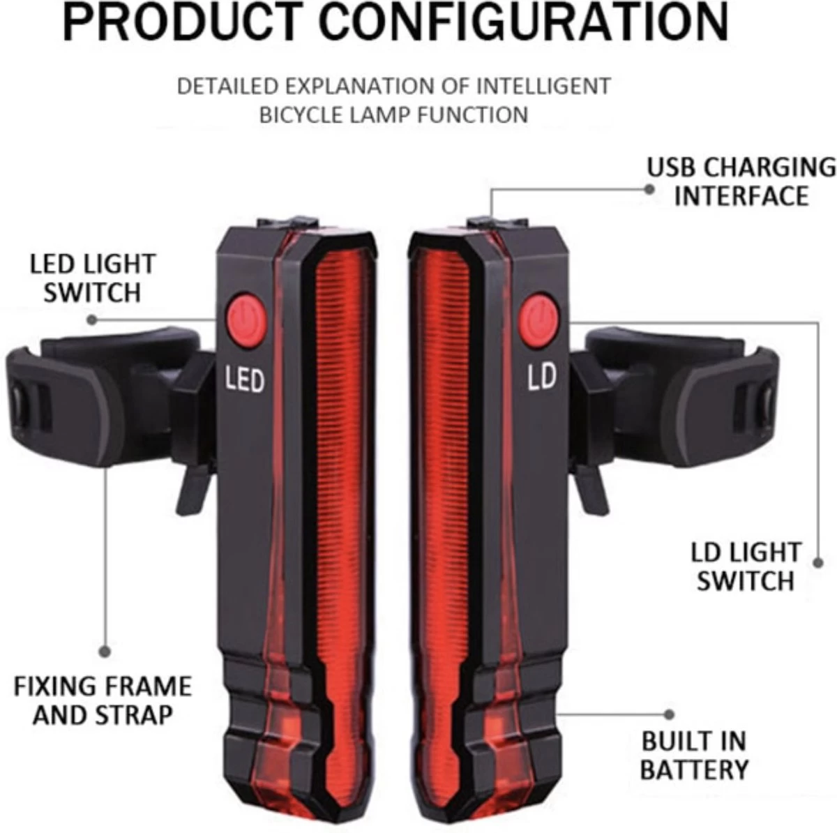 Merkloos Fietsverlichting USB Oplaadbaar Fiets Achterlicht LED Laser