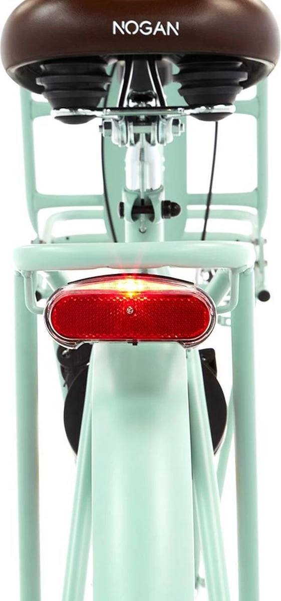 Deze hippe Nogan Vintage N3 transportfiets voor dames beschikt over een stabiele dubbelpoot standaard, waarmee je de fiets eenvoudig en veilig kunt neerzetten. De fiets beschikt ook over een stuurslot, waarmee je voorkomt dat het stuur (met de voordrager en eventuele zware bagage) omklapt. De fiets op slot zetten doe je middels het ringslot. Verder is deze Nogan Vintage transportfiets voorzien van heldere LED batterijverlichting, waarmee je goed zichtbaar bent in het donker. Deze fiets heeft een robuust frame met dubbele stang, die kenmerkend is voor de traditionele transportfietsen. Deze fiets is echter volledig aangepast aan alle moderne eisen! Verder vind je op deze fiets een comfortabel geveerd zadel, metalen spatborden, in hoogte verstelbaar stuur en zadel en reflectoren. Om veilig aan het verkeer te kunnen deelnemen hebben we deze Nogan Vintage transportfiets voorzien van zowel een terugtraprem als V-brake voorrem.