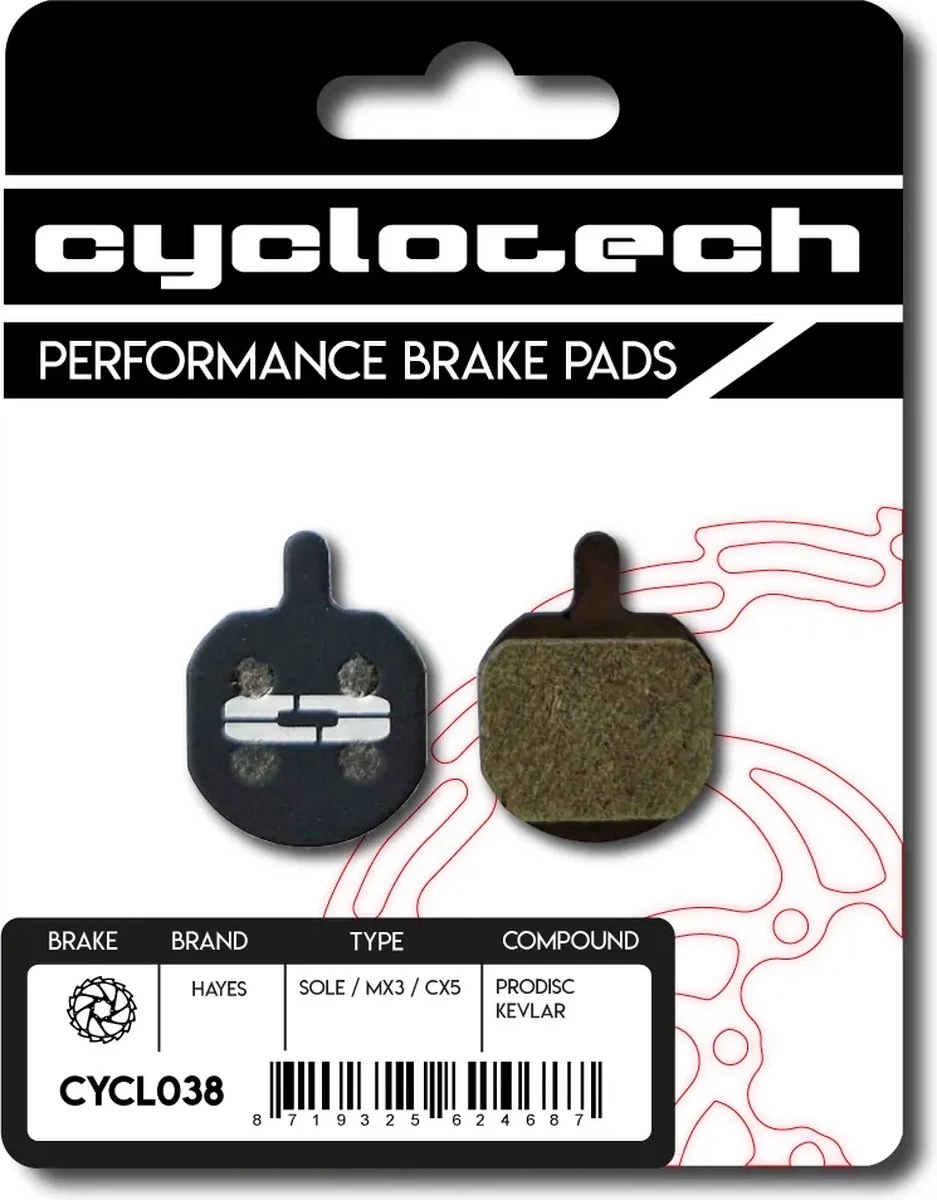 De Cyclotech Prodisc Kevlar remblokken zorgen voor maximale remkracht en doseerbaarheid.