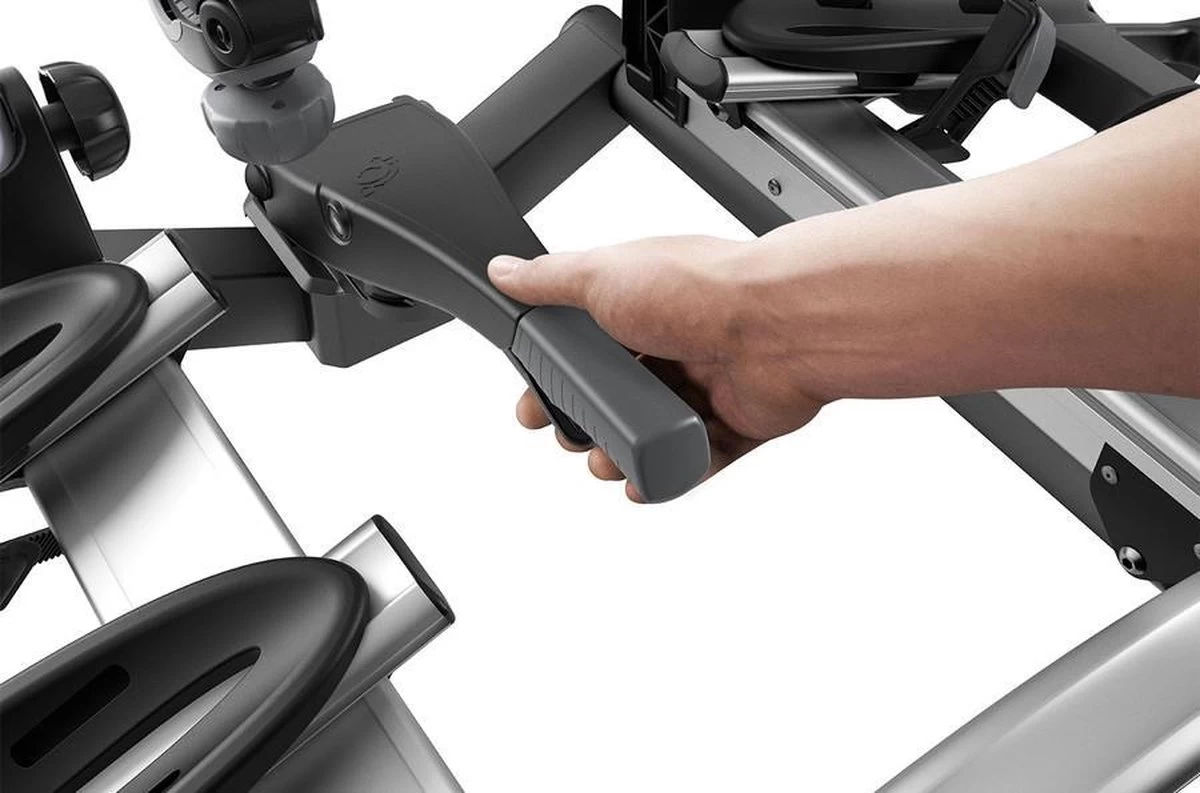 De Thule VeloCompact is kantelbaar door middel van het voetpedaal. Kantelen kan tevens met de fietsen op de Thule VeloCompact wat de toegang tot de kofferruimte vergemakkelijkt. Voor de compactheid is de Thule VeloCompact plat op te vouwen en makkelijk op te bergen.